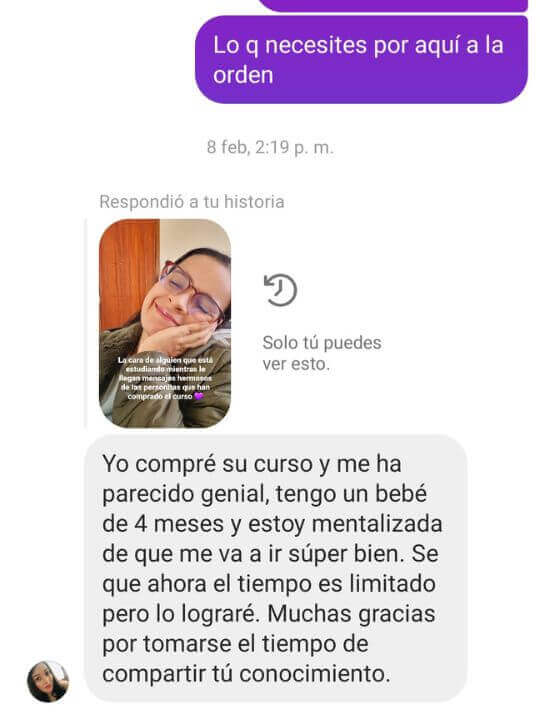 Contaras con el acompañamiento de una experta en la materia que te guiará paso a paso y en todo momento para que te conviertas en una experta